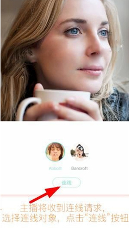 3、主播收到连线请求后,选择连线对象,点击“连线”按钮,表示同意,如下图:
