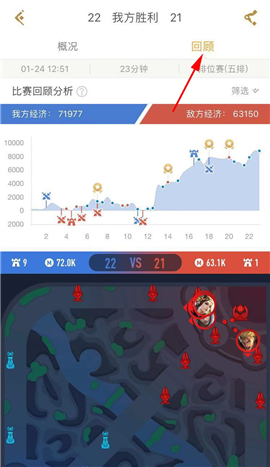 ③在战绩详情页中点击【回顾】,即可体验动画对局回顾功能咯
