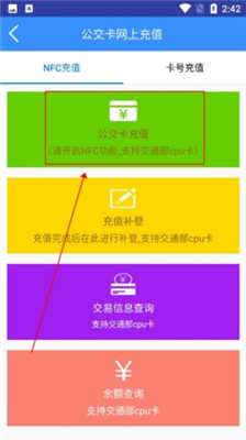 2、在这个版块里可以看到【NFC充值】的界面,下面会出现【公交卡充值】功能,选择它;