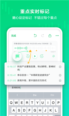 2、随心裁剪录音,留下精彩时刻。重点信息一键标记,从此不再烦恼录音整理。