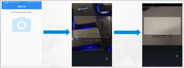 3、身份证信息采集需要上传身份证照片的正反面,由于采用了OCR识别技术,因此如果上传非本人身份证会提示“上传失败,请重新上传”,保证人证一致。