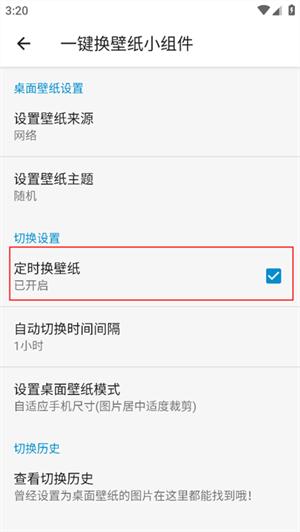 3、在设置中找到一件切换壁纸组件选项并点击打开