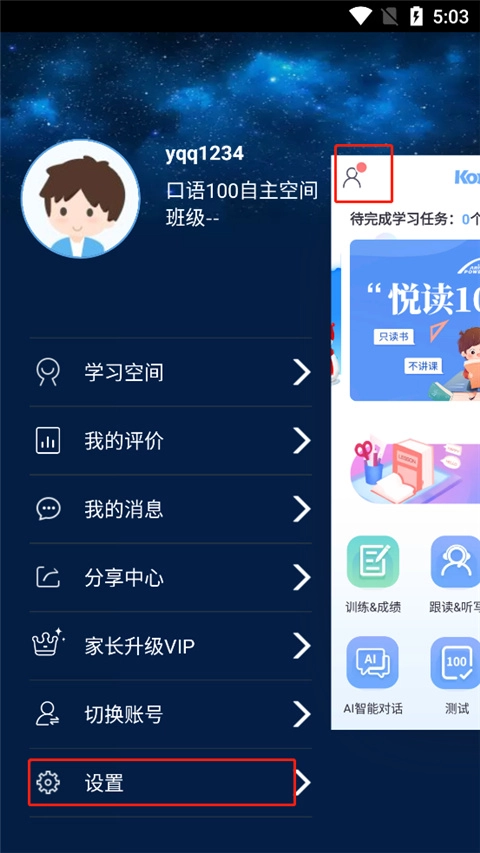 1、进入软件,点击左上角的头像,进入个人空间,选择设置项;