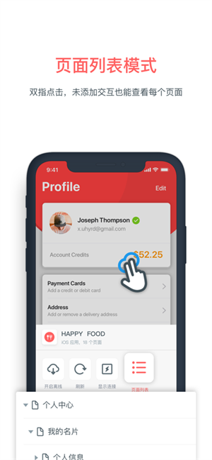 原型预览助手支持离线演示应用原型:进入预览页面,长按操作切换离线模式,无网络也可以轻松演示原型。