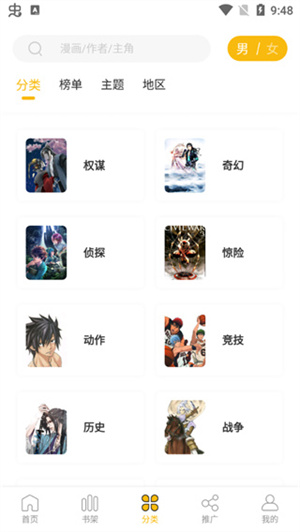 2、选择好性别好首页会自动推荐一些相关的漫画资源;