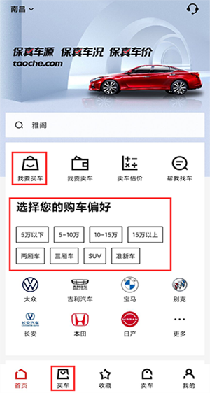 2、买车的话,您可以选怎您的购车偏好,也可以点击“我要买车”;