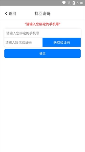 3、手机找回需要输入绑定的手机号,提供验证码找回,输入验证码点击确定。
