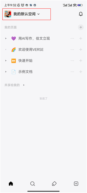 方法二:手动打开「印象AI」的服务开关:点击“我的默认空间”;