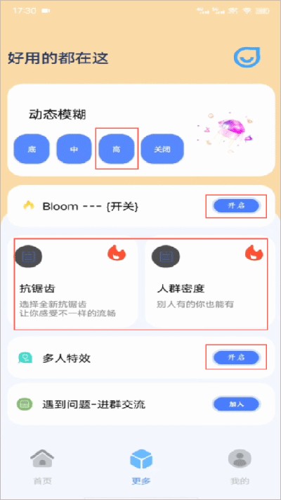 4、接下来,你可以来到更多页面,将页面中的特效和动态模糊功能都开启;这些功能可以提升游戏的画面效果,让你享受更加逼真的游戏世界;