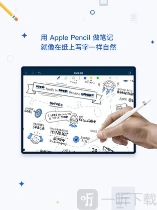 。连接iPadpencil直接做笔记。您可以自己选择笔和荧光笔的颜色和大小。无论是插入图片还是套索,它都非常好用!