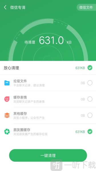 1. [微信清理]此功能专门针对微信软件,能够快速扫描并清理大量微信聊天文件等垃圾内容。