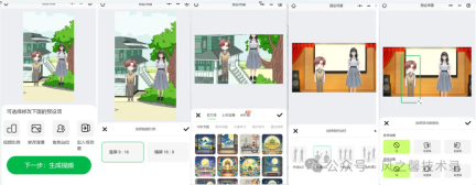2. 修改背景:可从库中选择背景模板,也能自己在本地制作背景,还支持通过AI生成背景图。设置角色站位:支持对