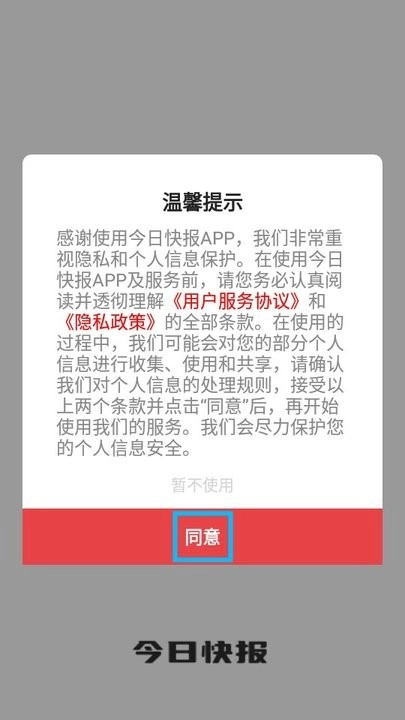 ·在2265安卓网点开今日快报,阅读弹出的温馨提示,然后点击【同意】。