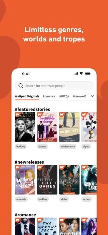 读者能够浏览各类热门书籍类型,像浪漫小说、同人小说、科幻小说、历史小说、LGBTQ+相关小说、奇幻小说、悬疑小说、喜剧小说、青少年小说等;也可以去探索其他扣人心弦的书籍类型,诸如以狼人、黑手党、黑暗浪漫以及亿万富翁为主题的小说。