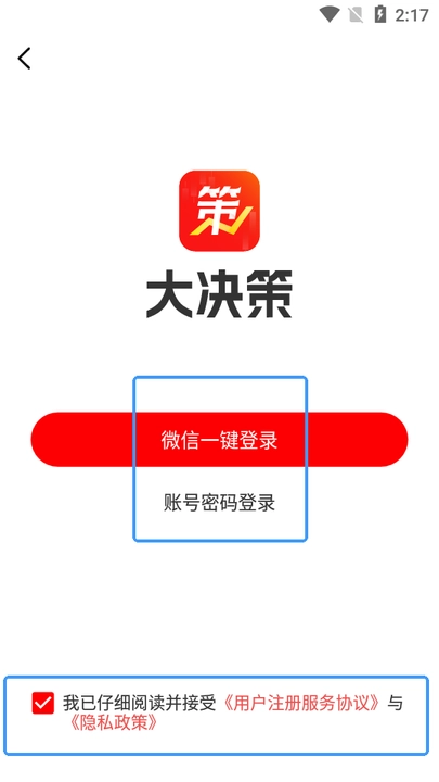 ·请勾选【我已仔细阅读并接受】,随后挑选您心仪的登录方式。