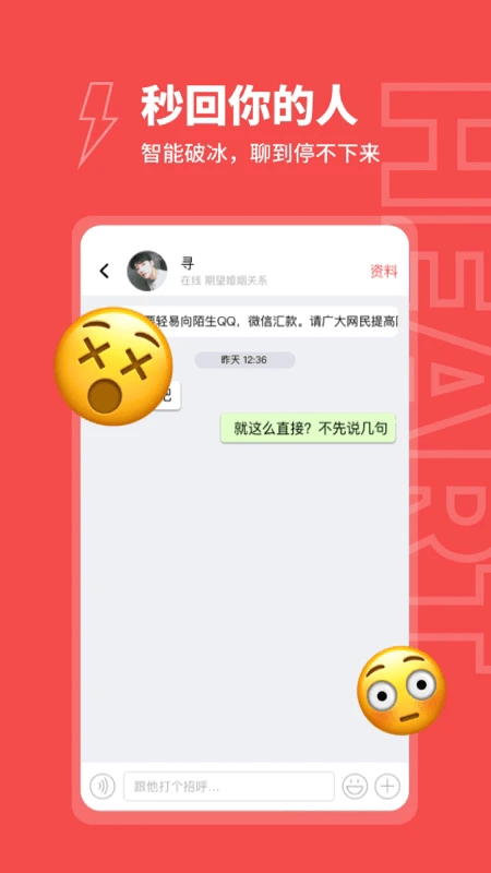 与超有趣的小姐姐畅快聊天,吹牛打趣根本停不下来。陌生人交友必备聊天软件,堪称聊天神器!