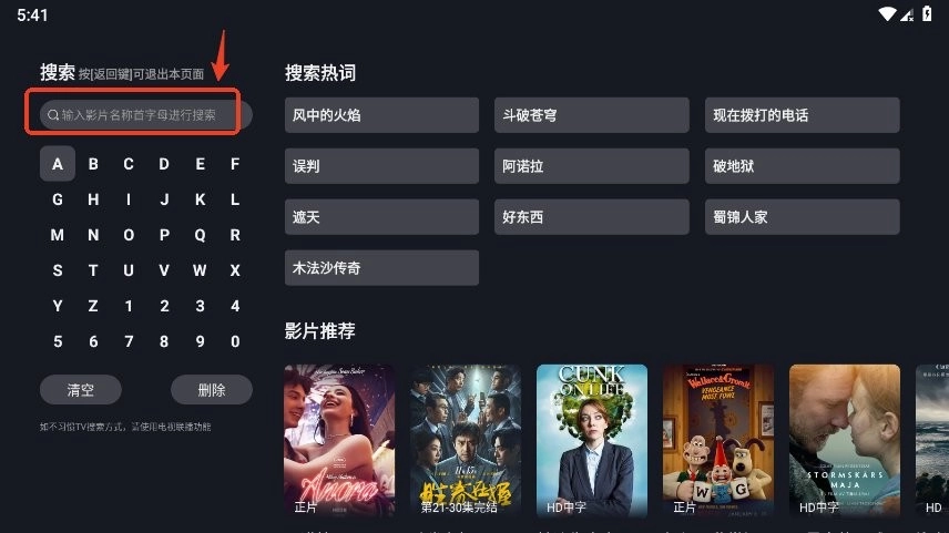 要是在栏目里没找到心仪的内容,可点击中间的“搜索”,在搜索界面依据首字母进行搜索。