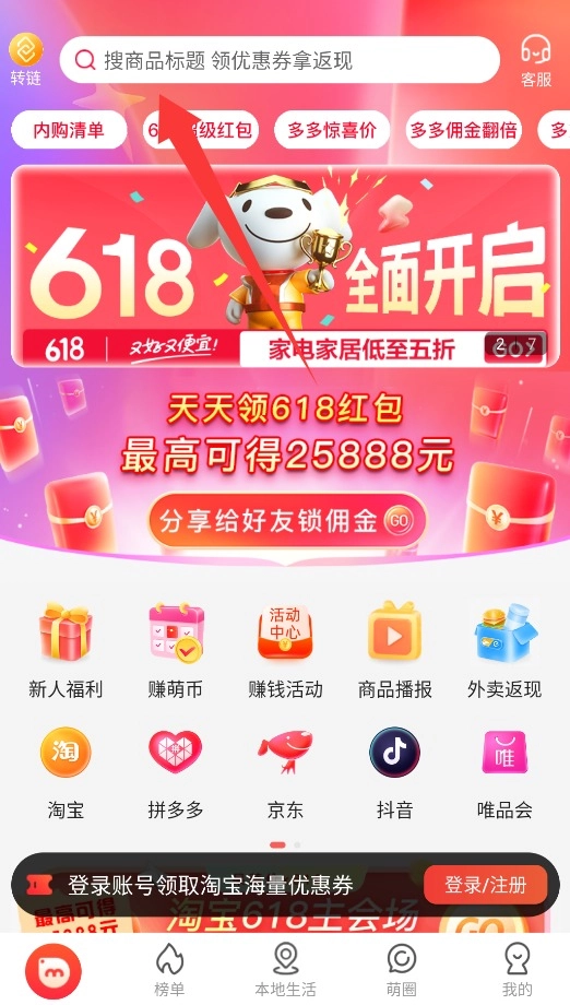 3、在首页搜索框输入商品关键词查找目标商品,领取专属优惠券后下单即可享受返现优惠。