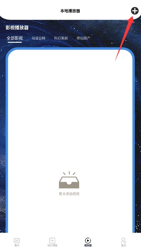 3、点击播放器右上角"+"图标,选择本地视频文件导入即可开始高清播放与管理。