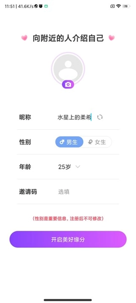 2、完善甜遇平台上的个人资料,涵盖甜遇昵称、头像、年龄、性别、地区及签名等信息,以便他人更全面地认识你。