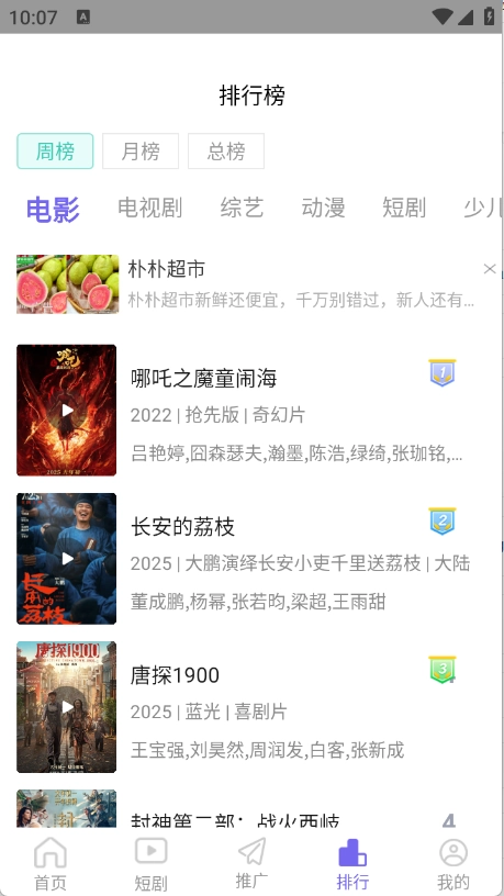 2. “排行”栏目依据当下热度对影视进行了排序。