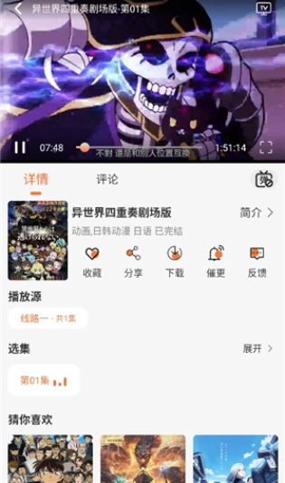 要是碰到喜欢的动漫,还能在该动漫的详情界面,点击图标,把动漫缓存下来。