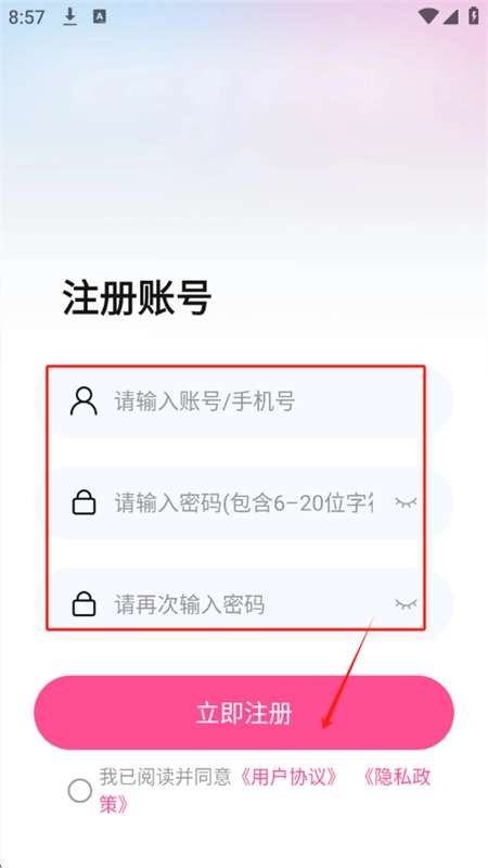 2. 若已有手机号和密码,直接输入即可登录;若没有,则点击“注册账号”。
