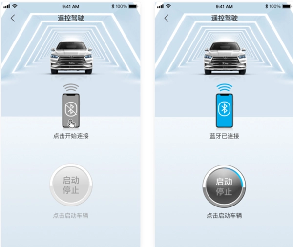 1. 若要进行遥控驾驶,当蓝牙尚未连接,需点击连接蓝牙;若蓝牙已连接但车辆未启动,则点击启动车辆。