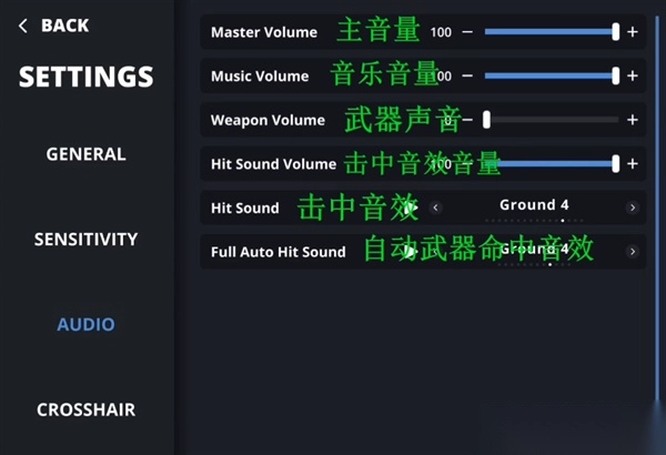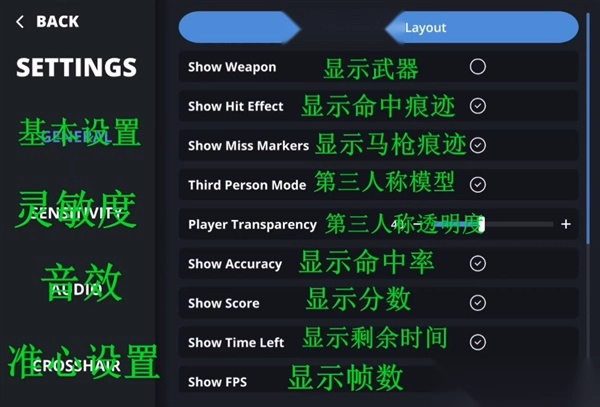可调整游戏音效、画质、灵敏度、准星样式等。