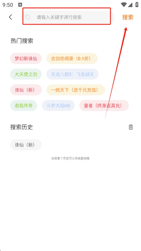 2、浏览或搜索你想玩的游戏,支持关键词智能搜索;