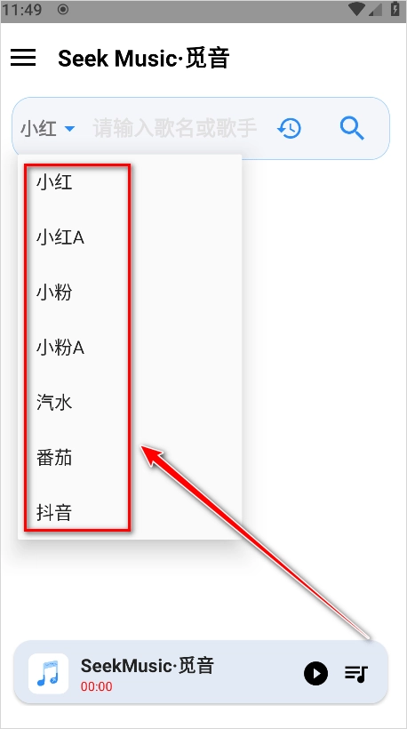 3、在搜索框输入歌名或者歌手。