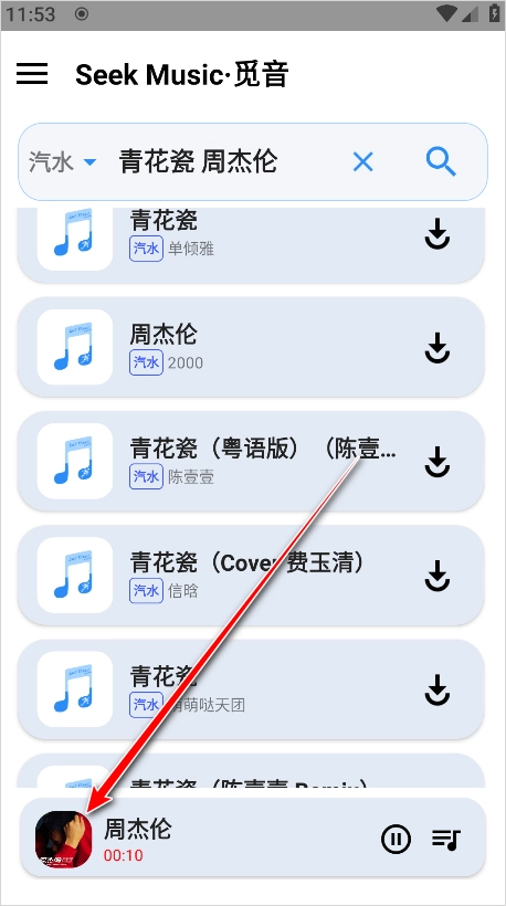 2、输入歌曲名或者歌手名,然后点击进入自己喜欢的歌曲版本。