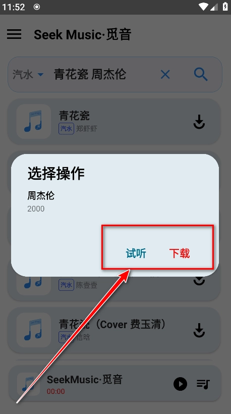 6、自主选择点击试听或者皆可。比如小编点击试听。