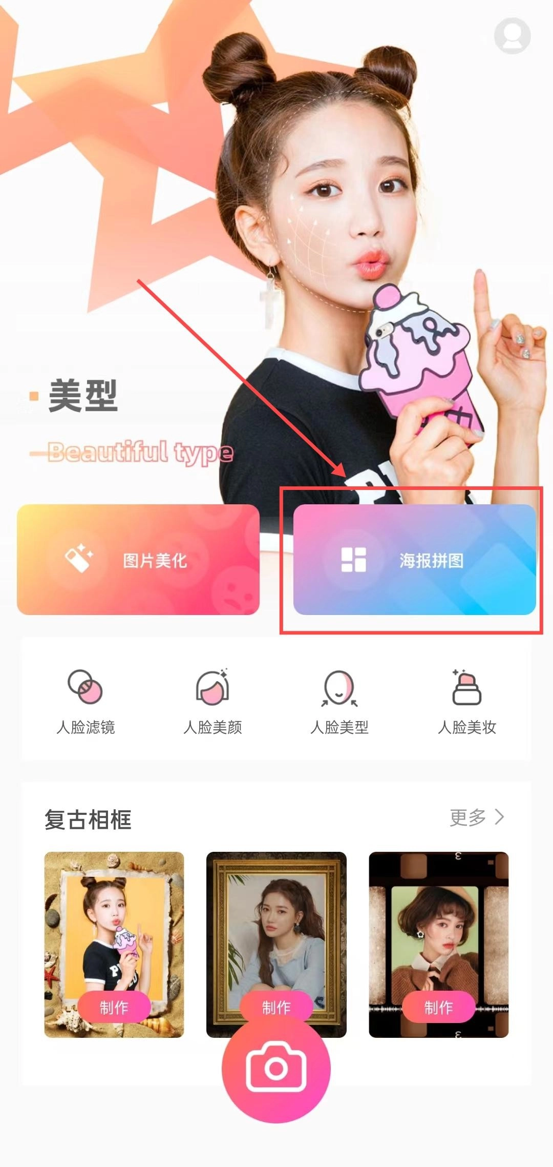 1、打开软件,进入首页后点击“海报拼图”功能。