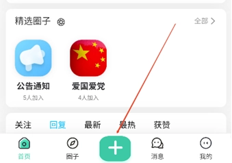 1、登录后返回首页,点击底部中央“+”图标;