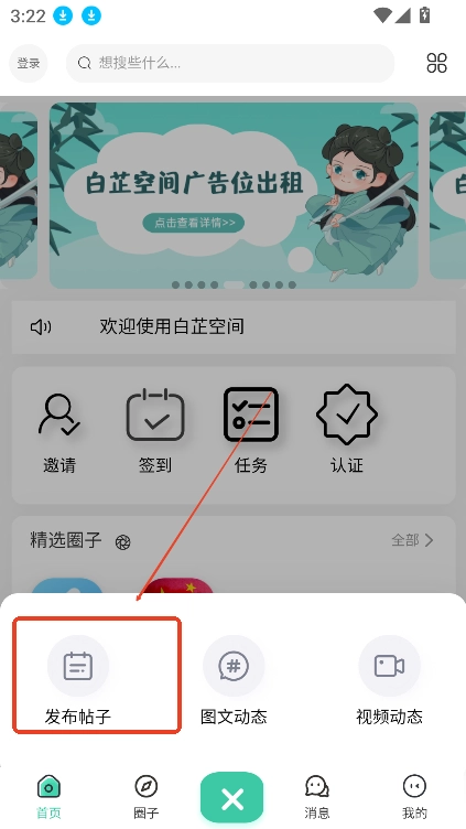2、选择“发布帖子”;