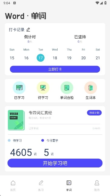 5、用户点击底部的单词板块,还可以快速进行背诵哦
