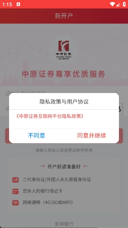 1. 并安装,点击同意并继续,即可进入开户页面;