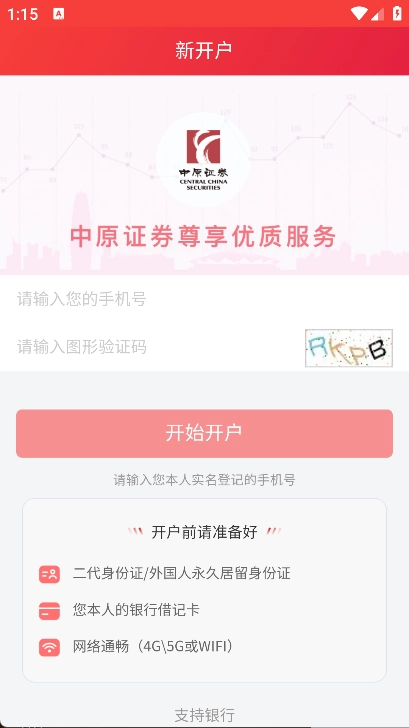 2. 输入手机号和验证码,即可快速开户,开始使用。