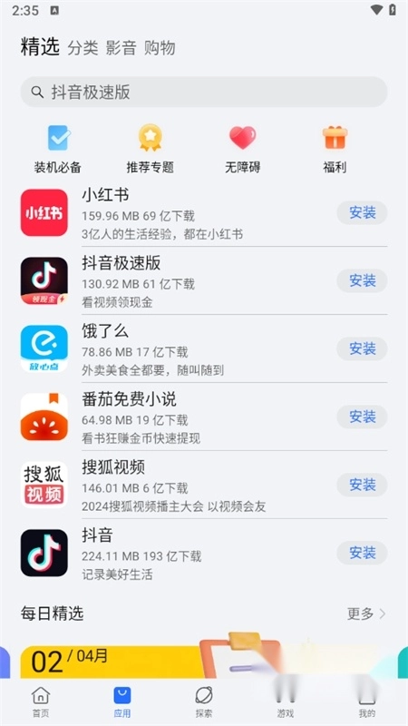 2、智能严选,提供新鲜、丰富、好玩的安卓应用