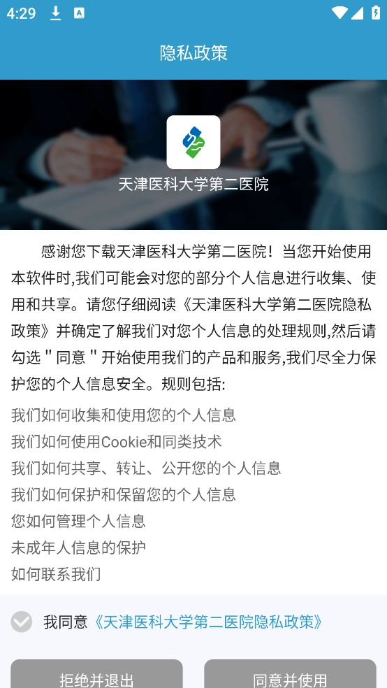1、可以直接最新版本的软件,进入的时候需要先同意隐私权限。