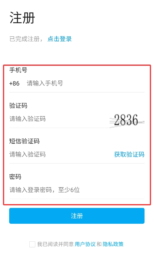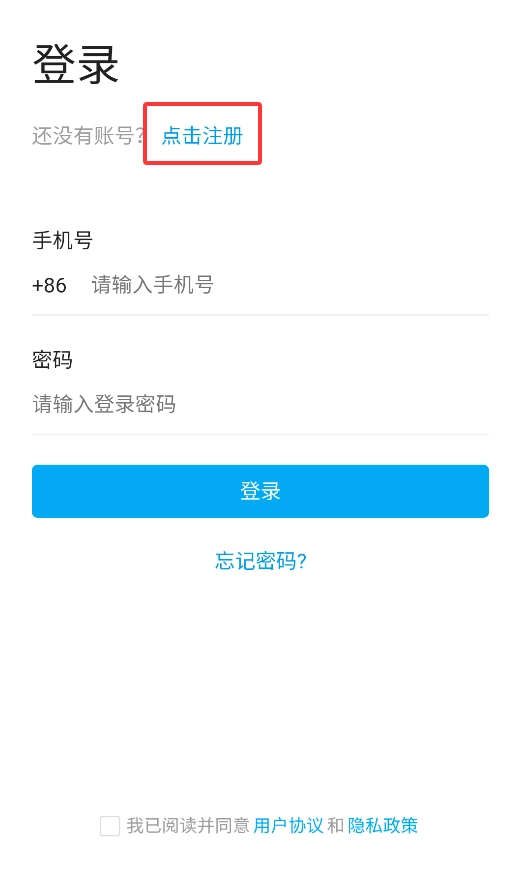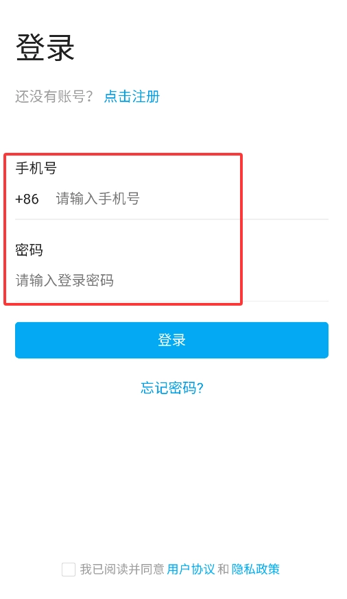 3、完成注册后返回登录界面,使用手机号和密码即可成功登录系统。