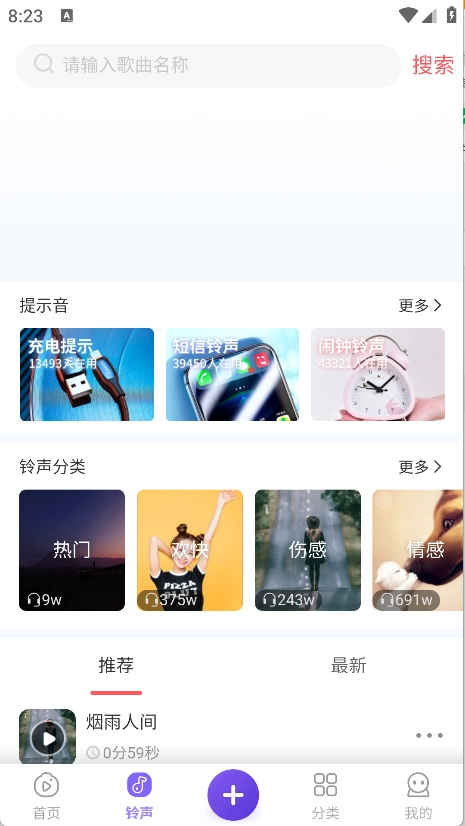 2、铃声页面内有诸多动听的铃声,用户能够随时挑选。