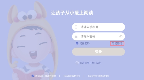 1、若遗忘登录密码,可在未泱阅读登录页面点击"找回密码"选项,进入密码重置流程。