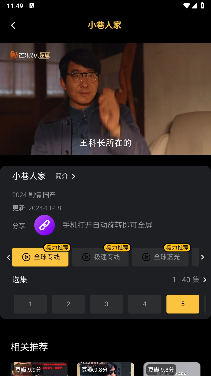 4. 选中资源后,点击剧集封面,此时会出现多个线路供您选择。若播放过程中遇到卡顿情况,您可切换线路。