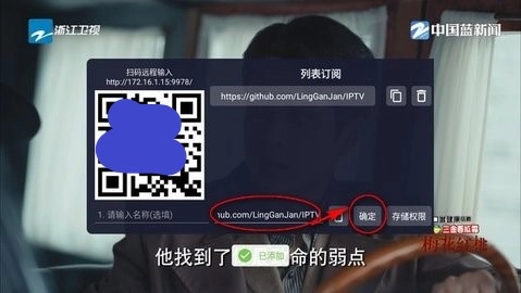 3.复制直播源贴到底部的输入框,点击“确定”,会提示“已添加”
