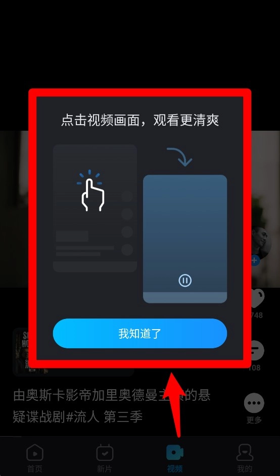 4、初次进入视频播放界面,会弹出提示窗口,告知如何通过点击视频画面获取更清晰的观影体验。