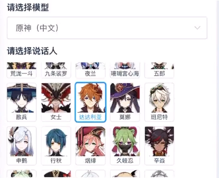 4、对原神游戏里众多角色予以支持,用户能够依据自身需求挑选不同角色来生成配音。