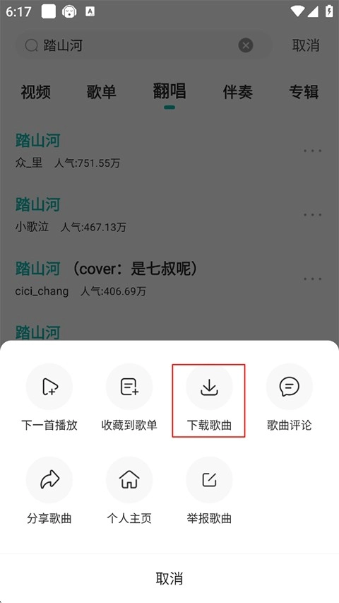 1、在本站安装5sing伴奏基地,打开在首页搜索栏搜索您喜欢的歌曲;