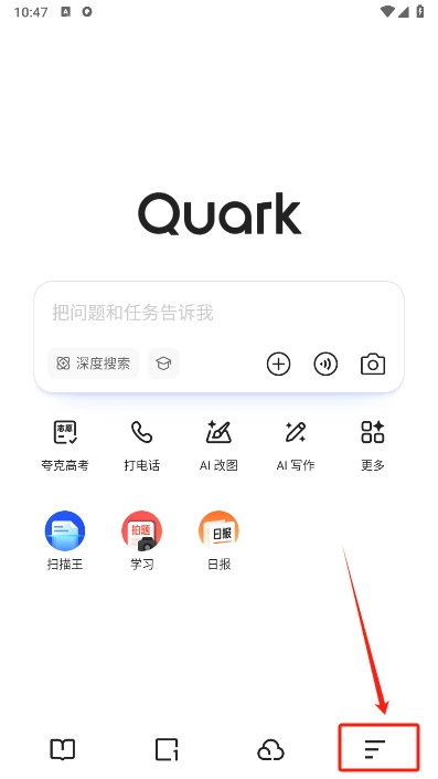 夸克音乐支持安卓和iOS两大主流系统,能与夸克浏览器账号同步,让歌单、记录在不同设备间实现共享。它延续了夸克浏览器“极简”的设计理念,播放界面简洁大方,既无弹窗打扰,也没有贴片广告,让用户能够全身心专注于音乐本身。1、开启软件后,点击底部的三横图标